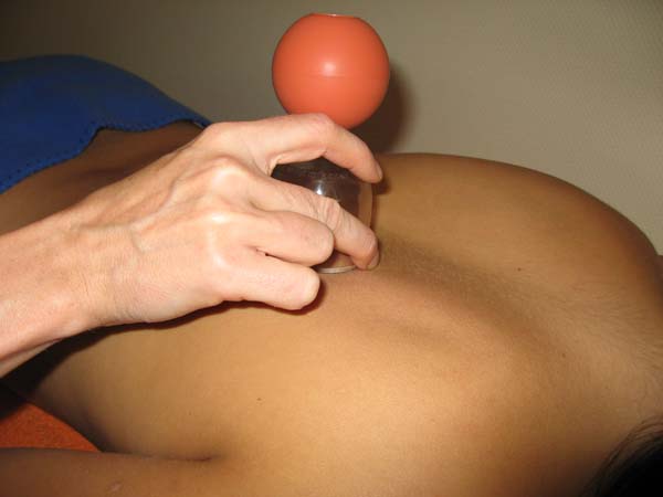 Schröpfmassage - SchröpfenSchröpfkopftherapie, SchröpfenGlaskugeln mit einer kleinen Öffnung werden durch Feuer von innen erwärmt und auf die Haut aufgesetzt. Der Unterdruck, der bei der Abkühlung entsteht, fixiert die Kugel an die Haut. SchröpfmassageIn einer nach unten offenen Glaskugel wird ein Unterdruck erzeugt (z.B. mit einem Gummibällchen als Ventil). Nach dem Auftragen von Massageöl wird am Rücken und an den Schultern entlang der Leitbahnen (meist Blasen-, Gallenblasen- und Dünndarm-Meridian) intensiv massiert und dabei gleichzeitig geschröpft. Diese Reiztherapie dient u. a. der Auflösung von Gelosen (Verquellungen in Unterhautgewebe und Muskulatur) und der Ausleitung. |